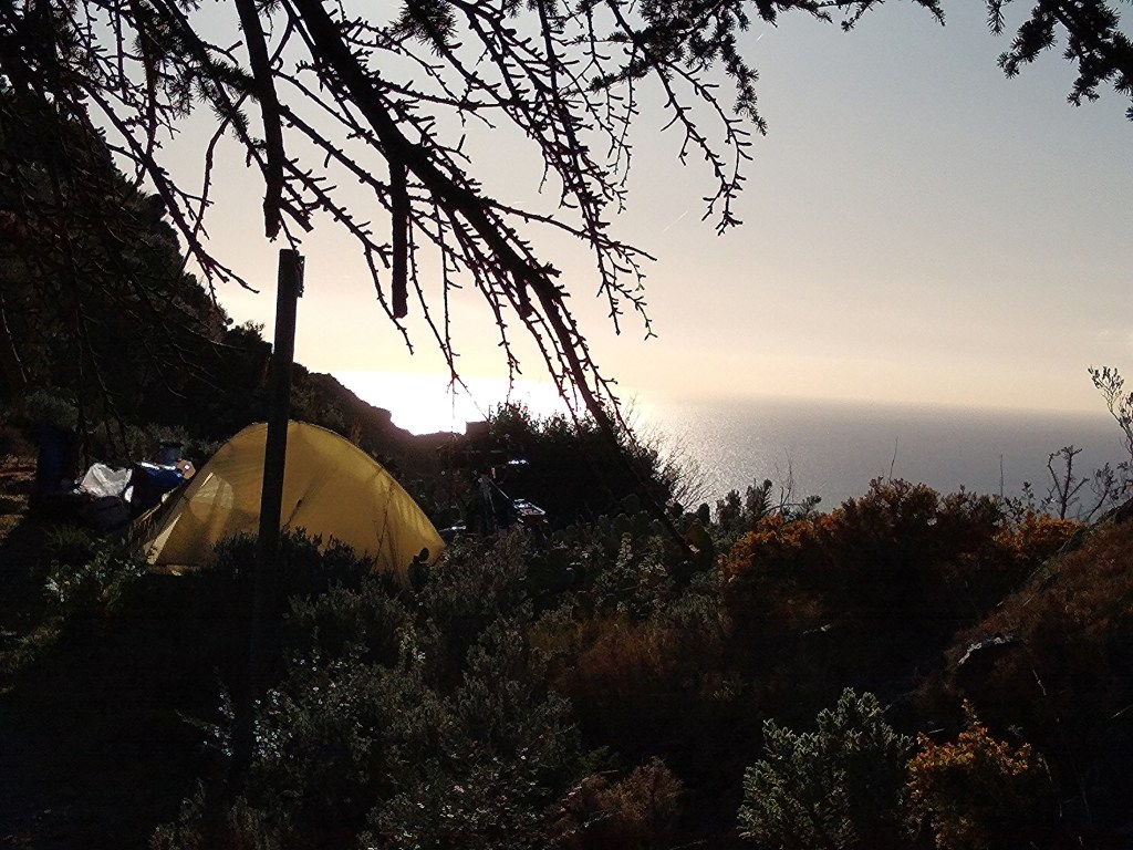 Dieser Zeltplatz ist genau auf der Französisch-Spanischen Grenze. Pünktlich zum Aufbau des Zeltes war der Regen weg und ich hatte Abendsonne. Sicht und Stimmung waren grandios.