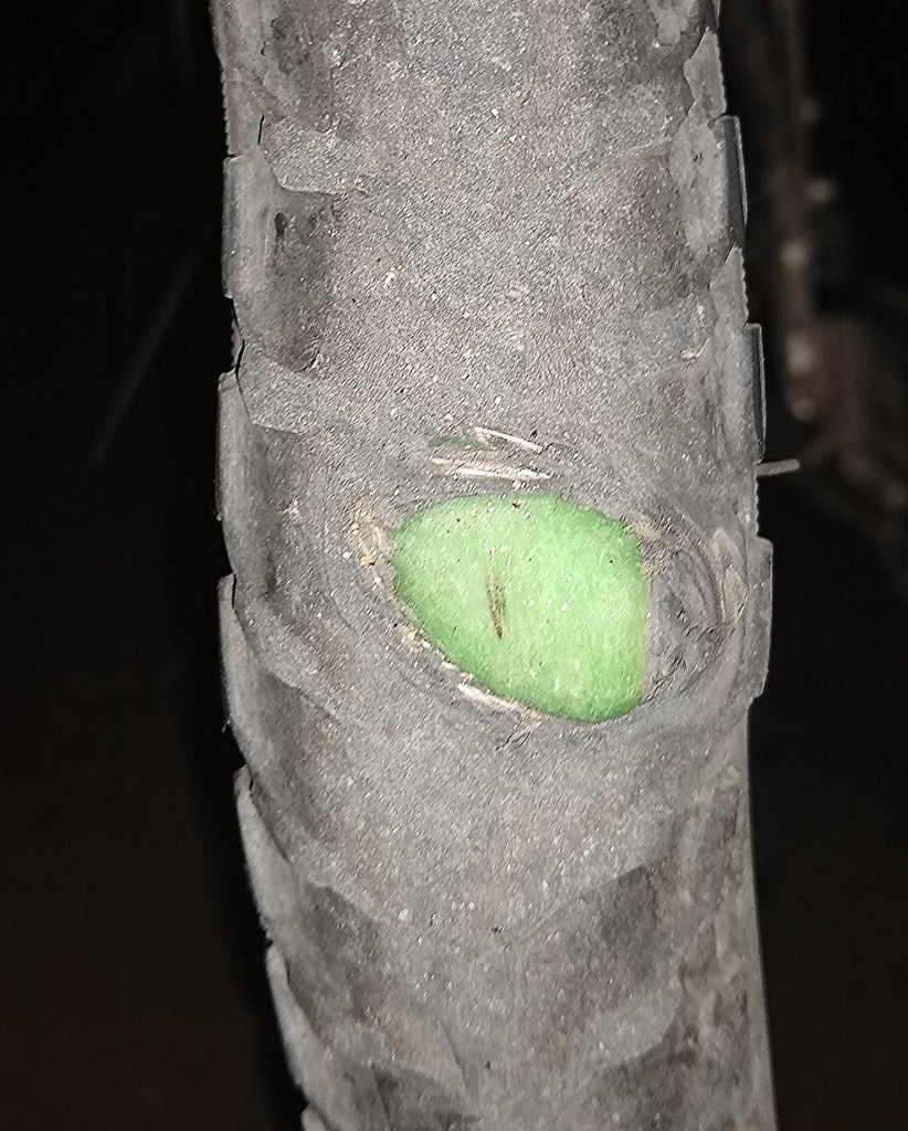 Dort musste ich klingeln. Tatsächlich kam nach wenigen Minuten ein junger Mann. Als er den Schaden sah, hatte er größtes Verständnis. Es gab den richtigen Mantel und mein Rad war bald wieder flott.