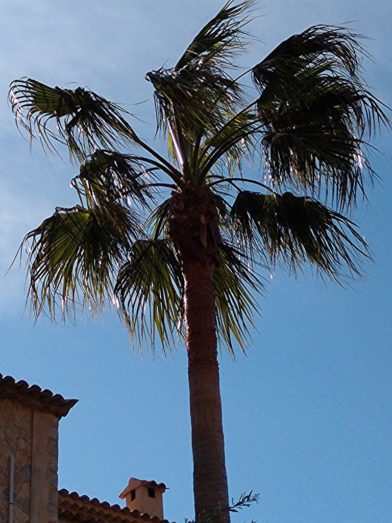 Der frische Wind ließ die Palme tanzen.