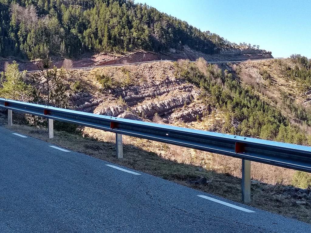 Es ging weiter steil abwärts, immer schottrig, teilweise sehr weicher Schotter. Ich erreichte den Parkplatz. Von dort ging es auf glattem Asphalt weiter. Das war wahrer Genuss. Der Supermercado hatte noch offen und außer guten Sachen gab’s dort auch Wasser. Ich konnte noch in der Dämmerung essen.