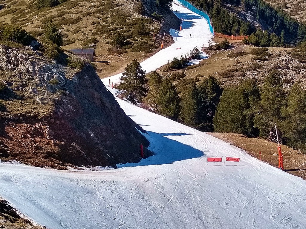 Anders als auf dem Foto sah das in Natur sehr steil und nicht gehbar aus. Neben der oberen Kurve mit dem Skifahrer seht ihr rechts den Weg weiter gehen. Wie man dahin kommt, sah ich auch in der Natur nicht.