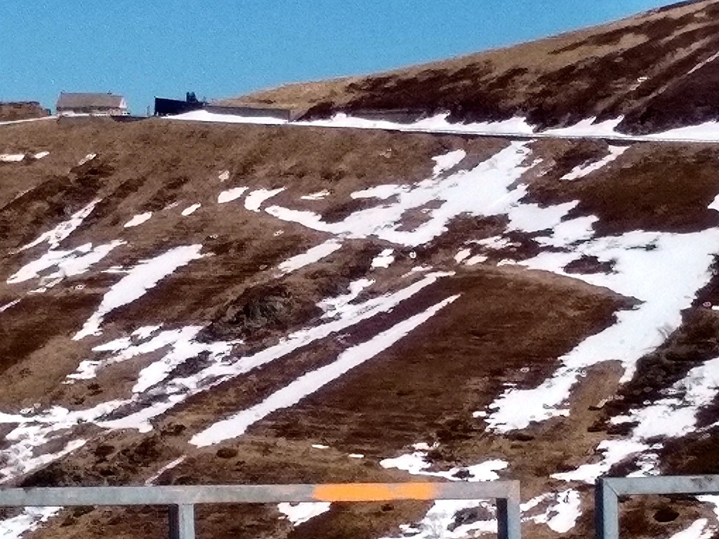 Hier war allerding Schluss. Der Streifen am Rand war über lange Strecken zu schmal, die oberen 5 cm des Schnees sulzig und, wie man ahnen kann, ziemlich bucklig. Ein Wanderer meinte, es würde weiter oben noch schlimmer und er würde mir doch sehr abraten.