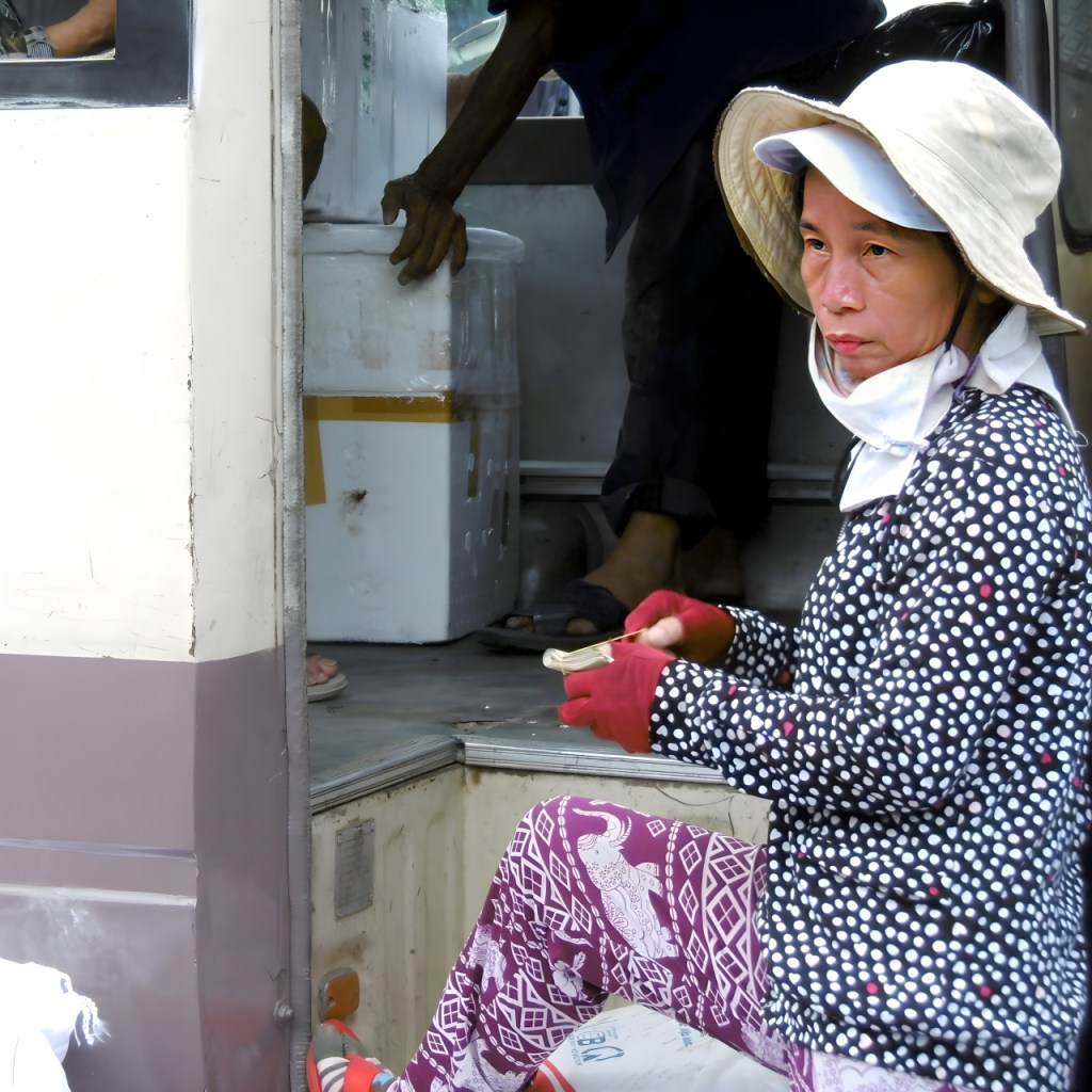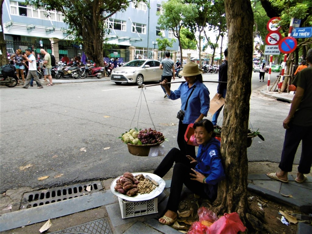 Viele Händlerinnen versuchten hier den Touristen was zu verkaufen. Ich hatte zwar richtig Lust auf die guten vietnamesischen Bananen, aber 50 K für 4 Stück waren mir doch zu viel. Ich war die Preise in den Bergen gewöhnt und da waren Bananen mein billiges Grundnahrungsmittel!