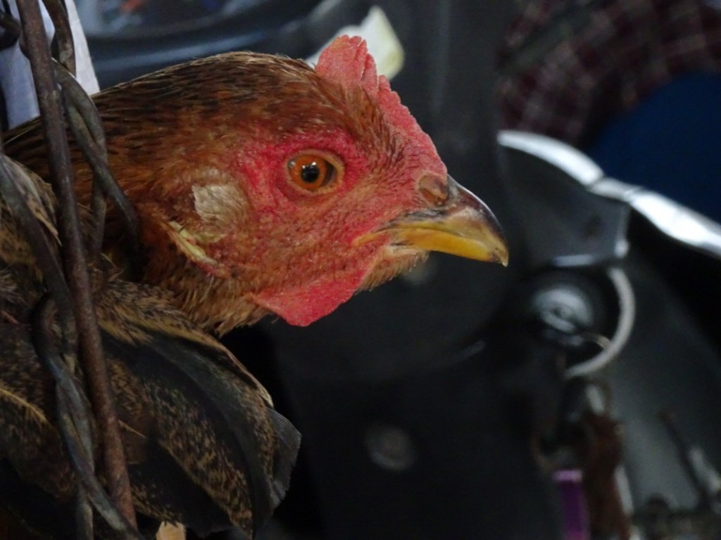 Dieser Gockel will erst noch was erleben, bevor er im Topf landet.
