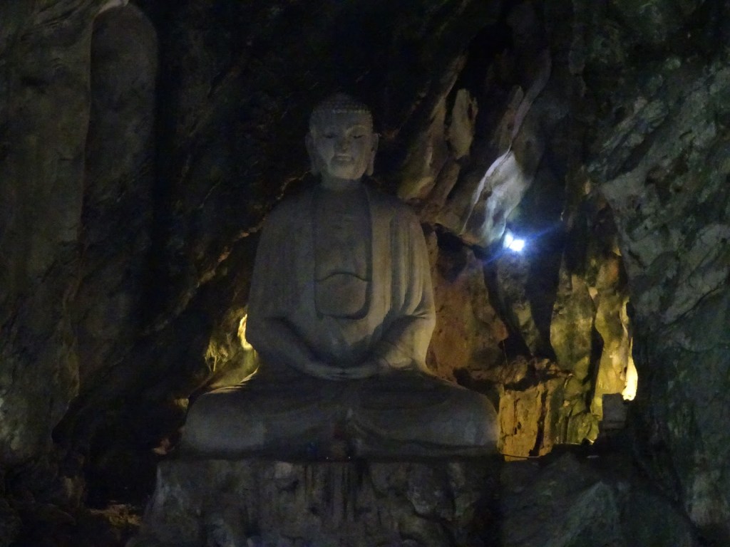 Wir steigen an den Marmorbergen aus. Anders als ich das erwartet hatte, machte das Klettern durch die engen Gänge Spaß. In der größten Grotte wacht Bhudda im Dämmerlicht über die Touris. Seine Ruhe verbreitet eine faszinierende Simmung.