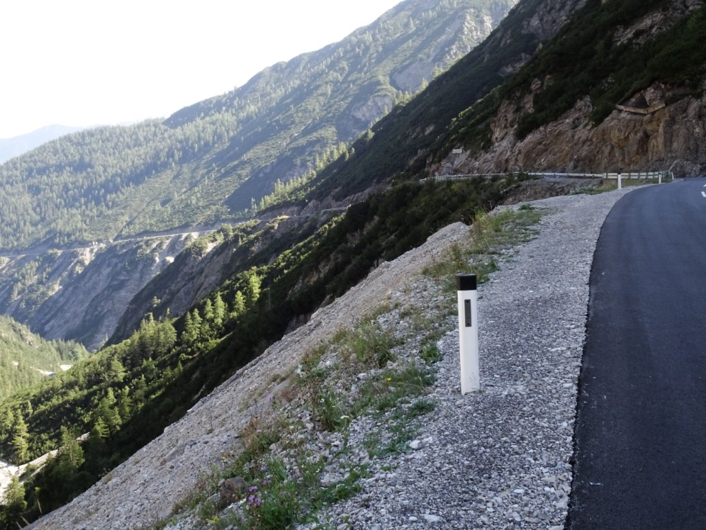 Die Abfahrt war steil und lang, die Kurven meist unübersichtlichtlich um Felsnasen herum. Vom bremsen wurden die Felgen heiß und ich musste mehrere Pausen zur Abkühlung machen. Trotzdem ist eine solche Abfahrt ein Genuss.
