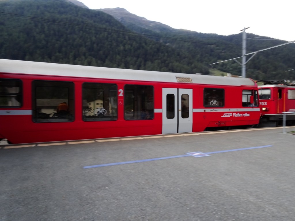 Nicht zuletzt die Rätische Bahn. Es ist noch eine richtige Eisenbahn. Hier wird gemütlich gefahren und der Fahrgast hat Zeit zum Schauen. Es gibt kein Fahrradabteil, es gibt einen Fahrrad Waggon. Wo gibt es eine schönere Eisenbahn?