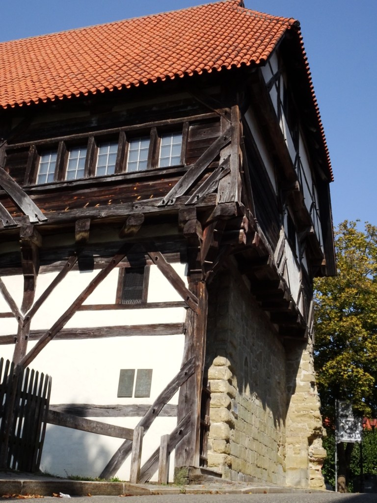 Besonders gefiel mir das Alte Haus, erbaut 1317 direkt an der Stadtmauer. Hier sind die Kopf- und Fußbäder mit Schwalbenschwänzen eingearbeitet (schwäbischer Mann, alemannisches Fachwerk?)