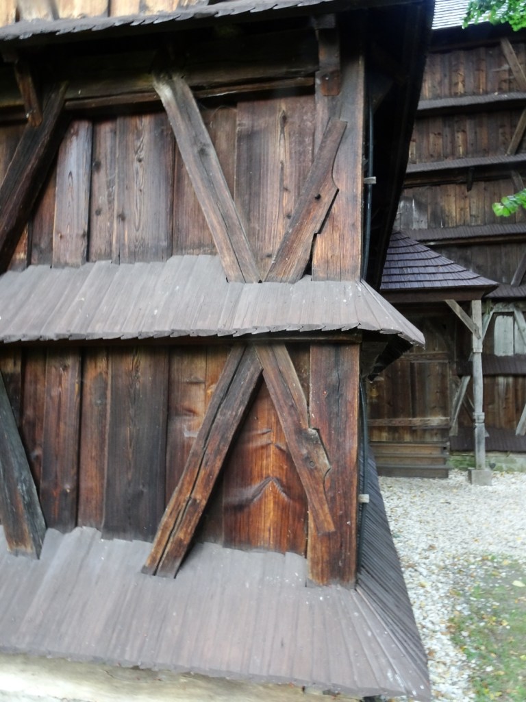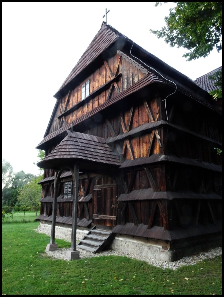 Die eigentliche Sehenswürdigkeit in diesem Dorf ist aber diese kleine Kirche. Sie entstand im ersten Drittel des 18. Jahrhunderts und ist nach ungarischem Gesetz vollständig aus Holz gebaut ohne Metallteile. Der Turm durfte nicht mit der Kirche verbunden sein. So klein wie sie ist, hat sie Platz für 1100 Leute.