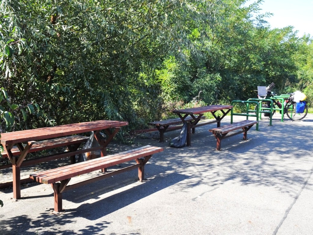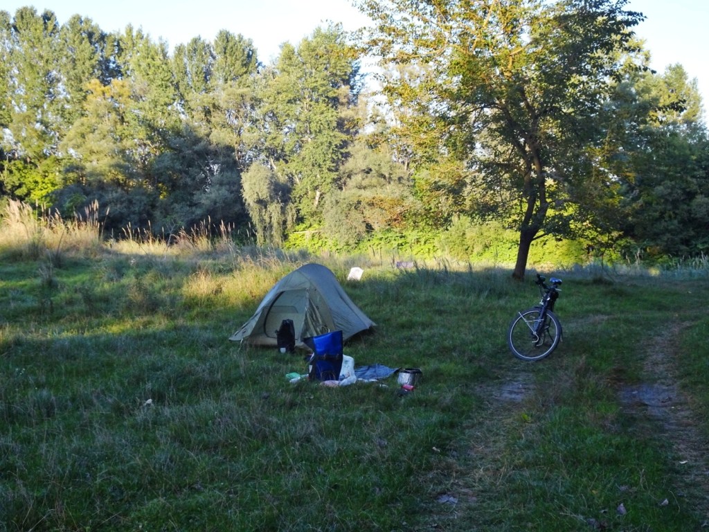 Der Grenzfluss zwischen Ungarn und Ukraine. Hier habe ich nahe dem Grenzübergang übernachtet. Ein 2+ Zeltplatz: ebene gemähte Wiese, Wasser zum Waschen, Einkaufsladen in 1 km Entfernung, sehr ruhig aber keine Sitzgelegenheit. Am anderen Ufer ist die Ukraine. Morgen früh geht es über die Grenze.
