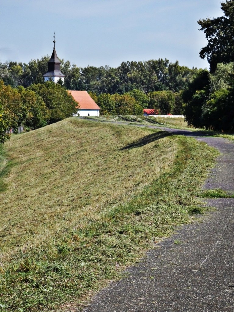 Hochwasserdämme wie hier waren häufig auf ihrer Krone geteert und somit beste Radwege. Mein Wasser-bauprofessor Emil Mosonyi war Ungar. An diesen Dämmen sieht man, dass die Ungarn gute Wasserbauer sind.