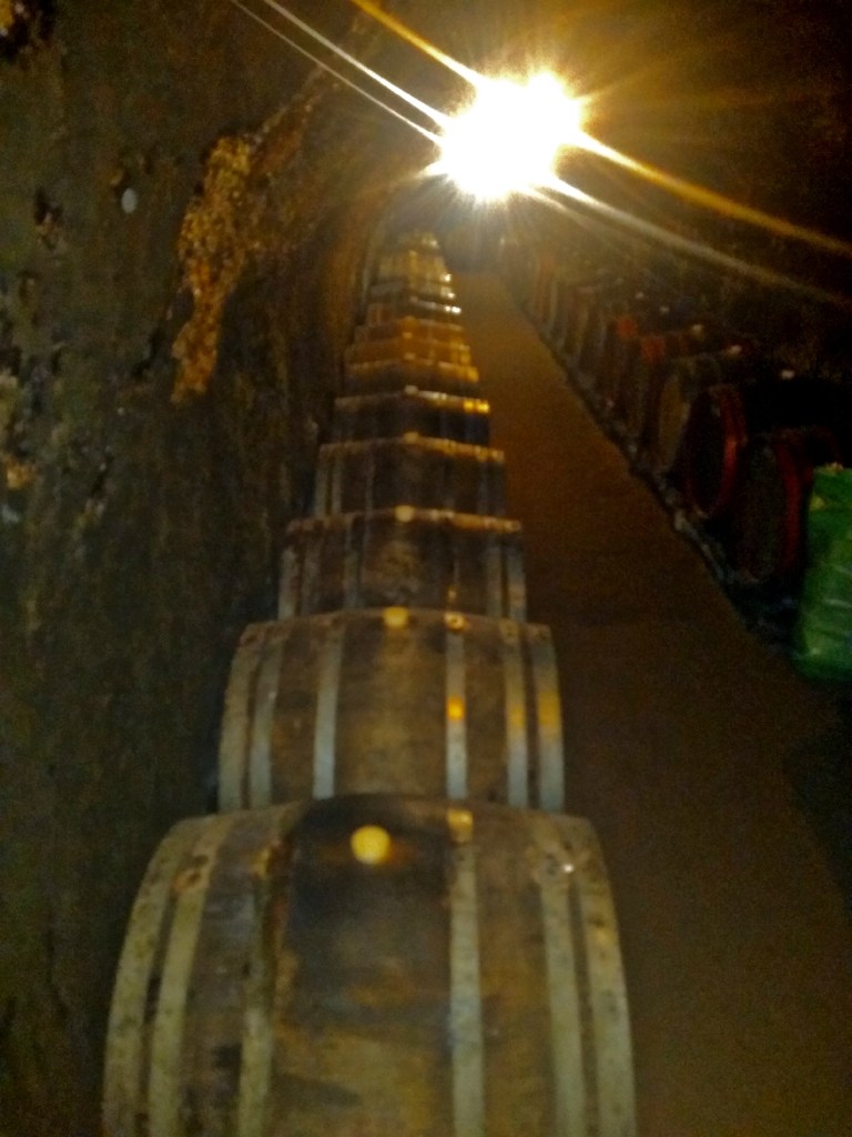Mit der Winzerin stieg ich etwa 2 Stockwerke hinab in einen Felsenkeller unter dem Haus. Dort standen die Weinfässer in zwei Reihen und aus einem füllte sie mir meine Flasche mit einem gläsernen Heber. Der Wein war zuckersüß, aber ich bekam kein Kopfweh davon.