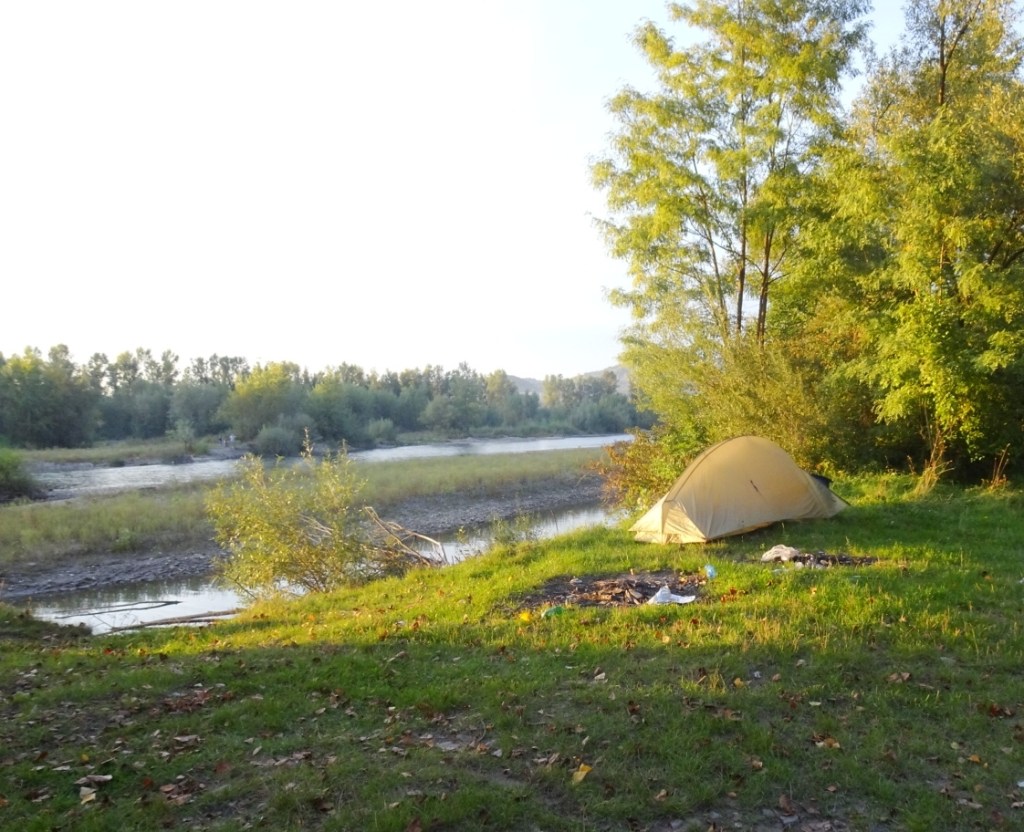 Bei diesen Wegverhältnissen war es für mich natürlich nicht möglich, an einem Tag 120 km zu fahren. Dafür fand ich diesen schönen ruhigen Zeltplatz. Bis zur Grenze waren es nur noch 20 km.