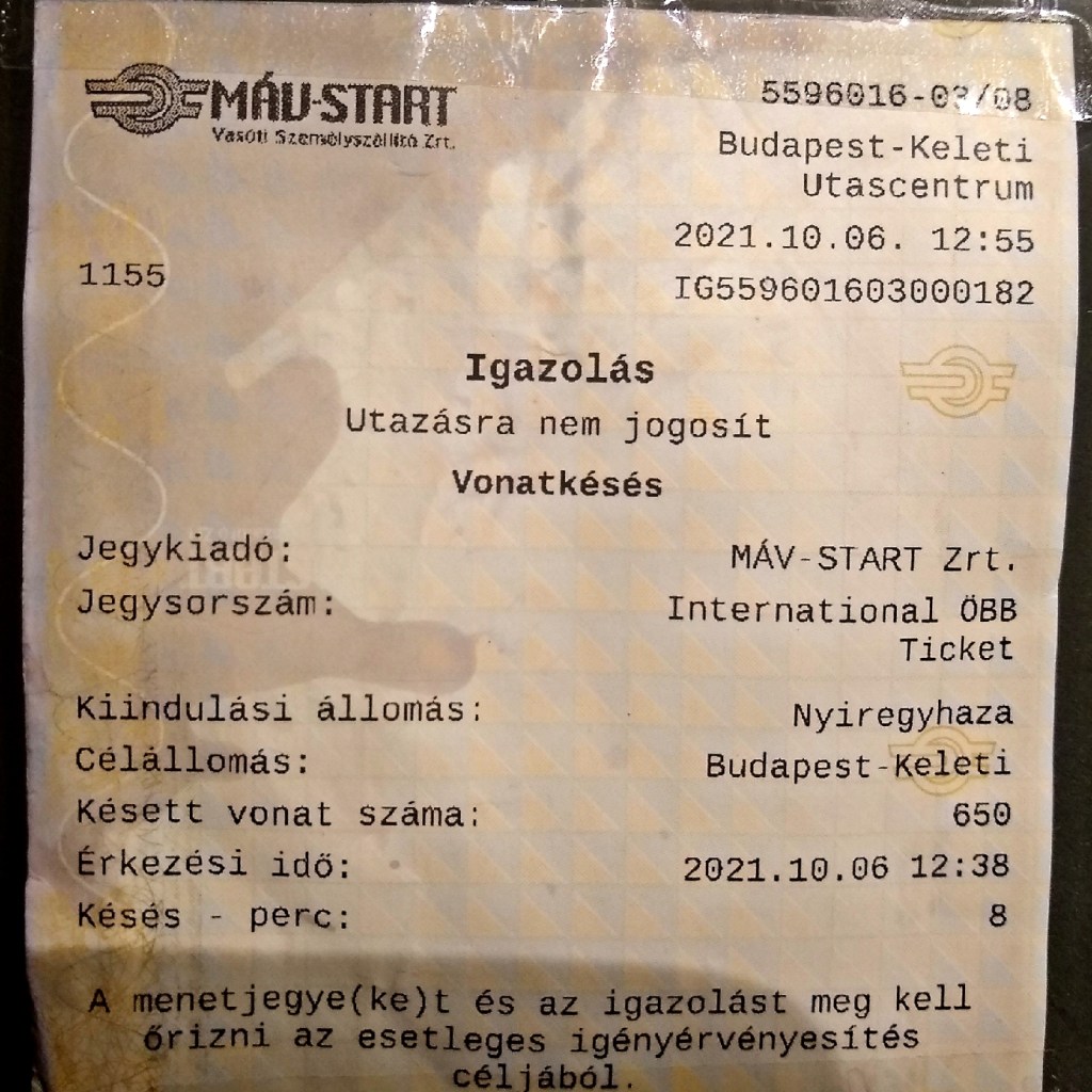 Ich hatte bei ÖBB von Nyiregyhaza bis Passau gebucht. Von den 10 Minuten Umsteigezeit in Budapest entfielen 8 Minuten auf die Verspätung des Zuges von Nyiregyhaza nach Budapest.
