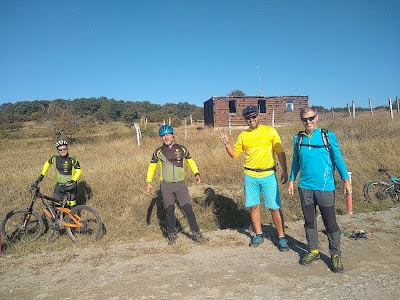 Die brauche ich auch, denn es kommen vier Radler den Berg hoch gesaust. Einer lässt an der Schranke zum militärischen Sperrgebiet, in das die ersten trotz Verbot locker hinein gefahren sind, einen Schrei los und pfeift sie zurück. Sein Schaltauge ist gebrochen. Ich helfe.