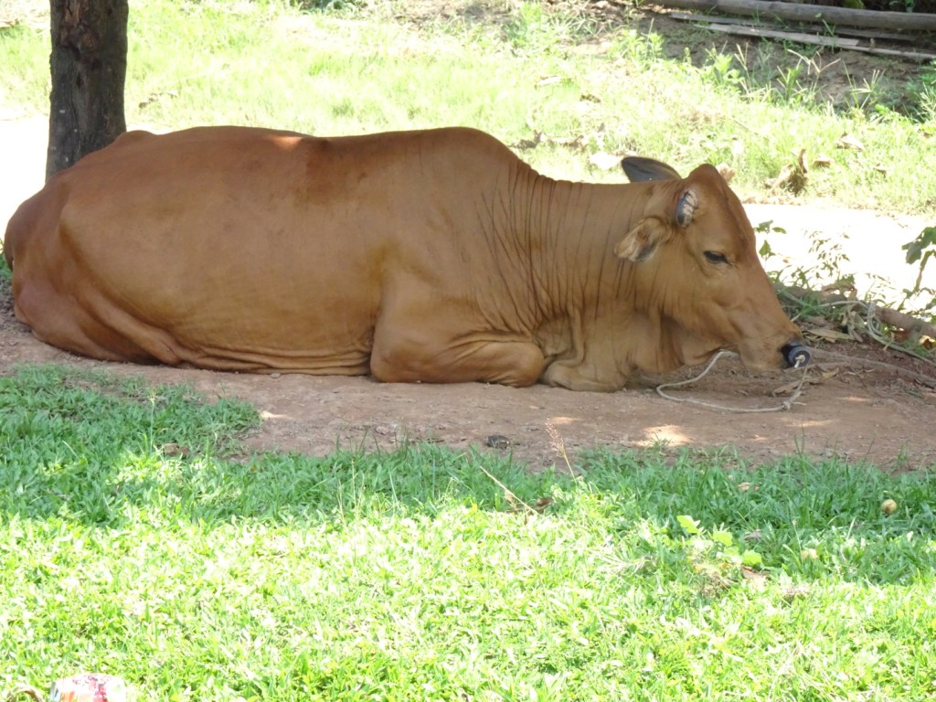 auch Kühe sind bei der Hitze schlapp und liegen im Schatten