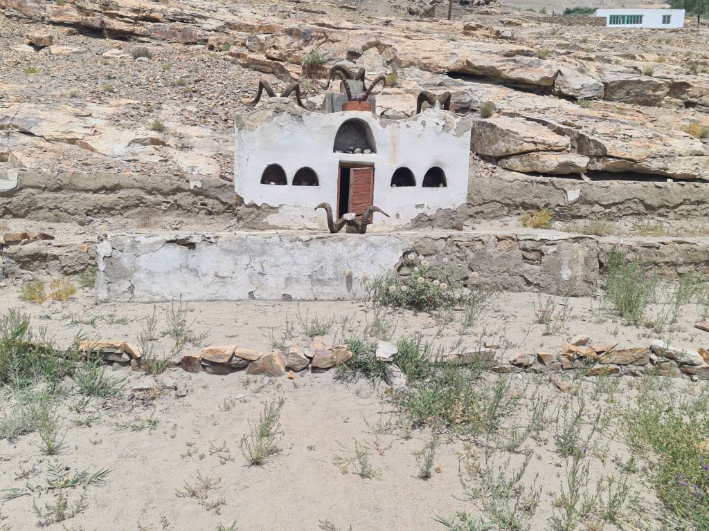 Auf dem Weg bis Langar ist diese Kultstätte bemerkenswert. Sie ist eindeutig nicht muslimisch. Die vielen Hörner der Marco Polo Schafe (Argali) weisen eher auf eine Naturreligion hin. Nach Wiki waren die Pamiri früher Zoroastrier (https://de.wikipedia.org/wiki/Pamiri)