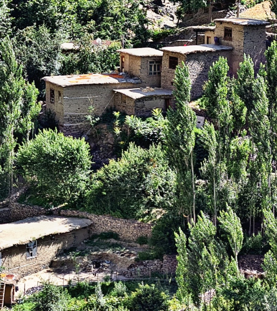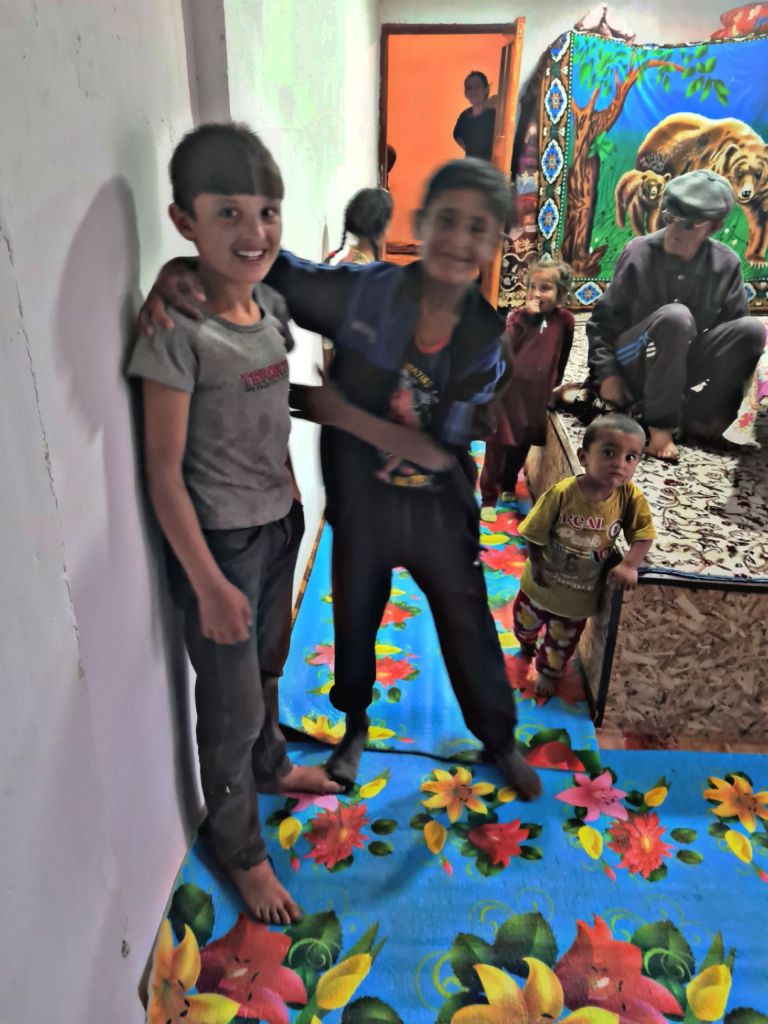 Ich fand die vielen bunten Decken über der Mauer witzig und fotogen. Doch bevor ich mein Handy zücken konnte, war ich schon umringt von Kindern: where are you from? what’s your name? ….. Auch der Vater erschien. Da die Milch vom Vortag so gut war, bat ich ihn um eine Schale. İch wollte ihm dafür zehn Somoni geben. Er lud mich in sein Haus ein und ich bekam die Schale Milch. Er freute sich, dass ich sein Haus fotografierte.