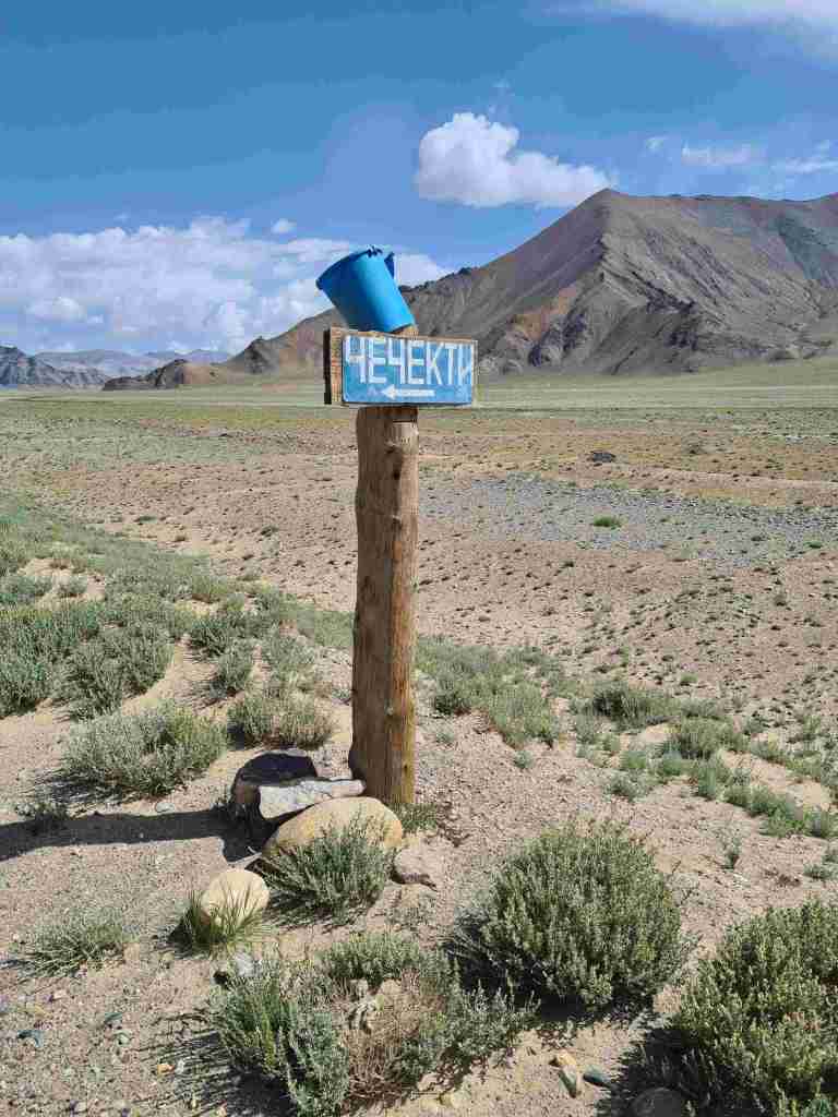 Ich musste alleine zum Ak-Baital hochschieben. Natürlich habe ich das Schild unten gesehen. Wie von europäischen Pässen gewöhnt, habe ich es oben erwartet. Dort stand keins und ich bin ahnungslos über den Pass gefahren. Deshalb kein Bild. Dieses Bild ist etwa 500 m nach dem Pass entstanden.