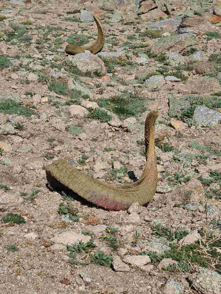 Am nächsten Morgen ging ich um 5 Uhr los. Unterwegs fand ich diese Hörner eines Marco Polo Schafes.
