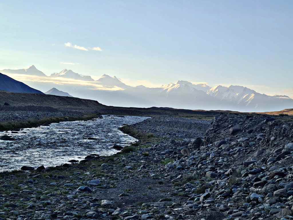 Morgens um 6 Uhr krabbelte ich aus dem Zelt und, wow, sah diese Berge. Auch dies war ein traumhafter Platz, den ich nur ungern wieder verlassen habe.