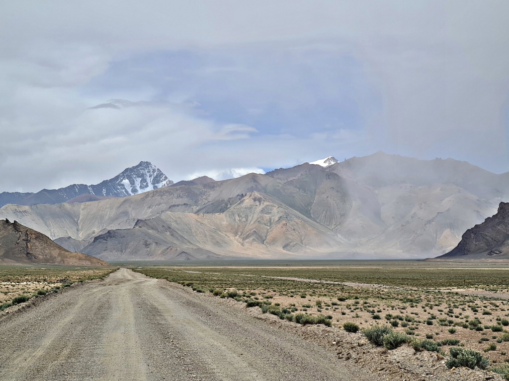 Auf der Rückfahrt von Rangkul war der Blick in die Berge imposanter als auf der Hinfahrt. Hier regnet es auf der rechten Seite. Ich konnte oft beobachten, dass die Regen wie hier sehr lokal sind. Manchmal erreichen die Regentropfen nicht einmal den Boden.