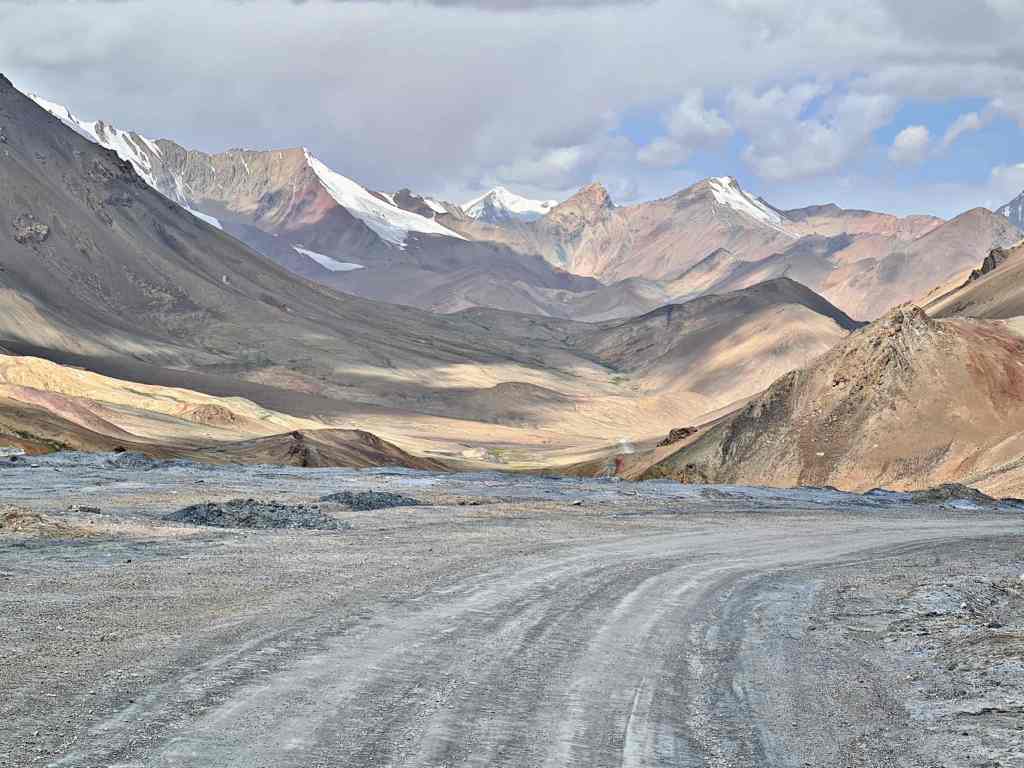 Da drüben fahren die Vier kleinen Punkte weiter zum Ak-Baital Pass und zum Karakul.