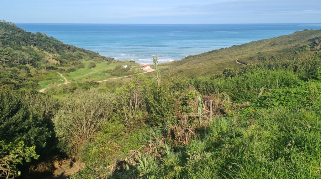 Vor Donostia ging die Nationalstraße in eine Autobahn über, die ich natürlich nicht fahren durfte. In diese Situation habe ich mich gebracht, weil ich die geplante Route verlassen hatte. Über einen Feldweg ging es weiter. Bei der verbotenen Durchquerung eines Privatgrundstückes kamen zwei kläffende Köter auf mich zu. Die Frau des Hauses kam heraus, bändigte ihre Hunde und erkundigte sich sehr freundlich nach meiner Reise.