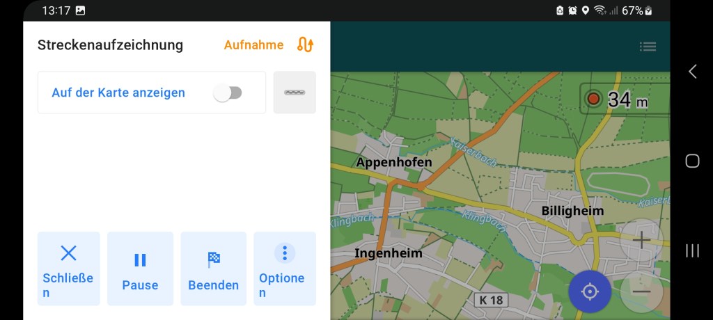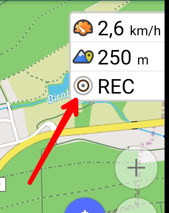 Es ist möglich, den Tracker einzuschalten und Osmand nur im Hintergrund laufen zu lassen. Osmand ist dann nich sichtbar