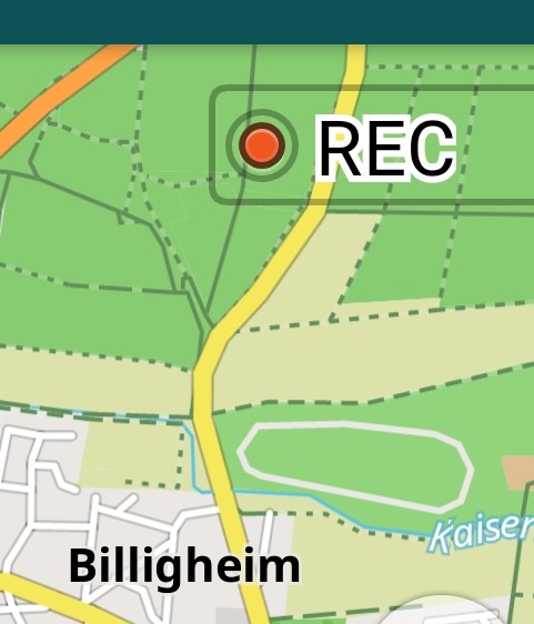 In der Kartenansicht erscheint das Track-Icon. Es ist zunächst schwarz/weiß, d. h., die Aufzeichnung ist ausgeschaltet.